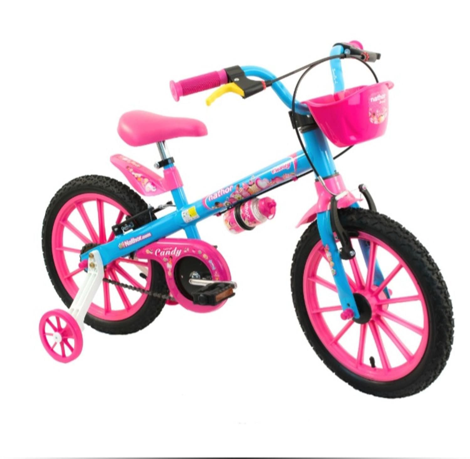 A bicicleta Candy Aro 16 da Nathor possui limitador de giro do guidão, importante característica que evita com que guidão dê uma volta completa e danifique o freio, além de preservar a integridade física da criança.