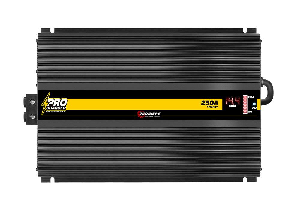A Fonte ou Carregador automotiva digital PROCHARGER 250A apresenta o que há de mais moderno e eficiente para conversores de energia de alta potência para recarga de baterias e alimentação de sistema de som automotivo com até 250 Amperes. Com destaque: