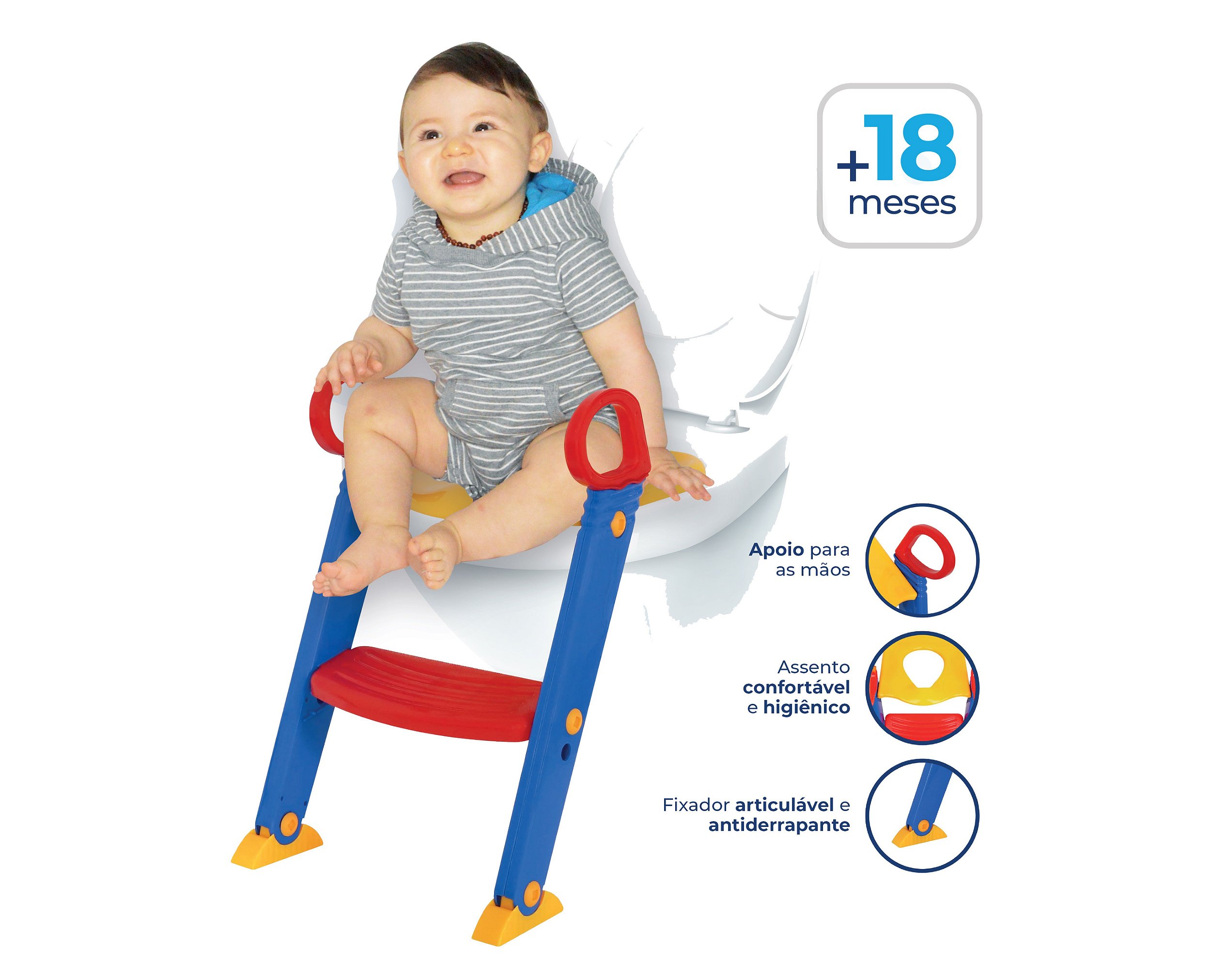 O Assento Redutor da Multmaxx foi projetado para manter seu filho seguro e confortável ao usar o banheiro igual a mamãe e o papai. É ideal para as crianças que ainda não alcançam o vaso e auxilia no desenvolvimento de noções de higiene.